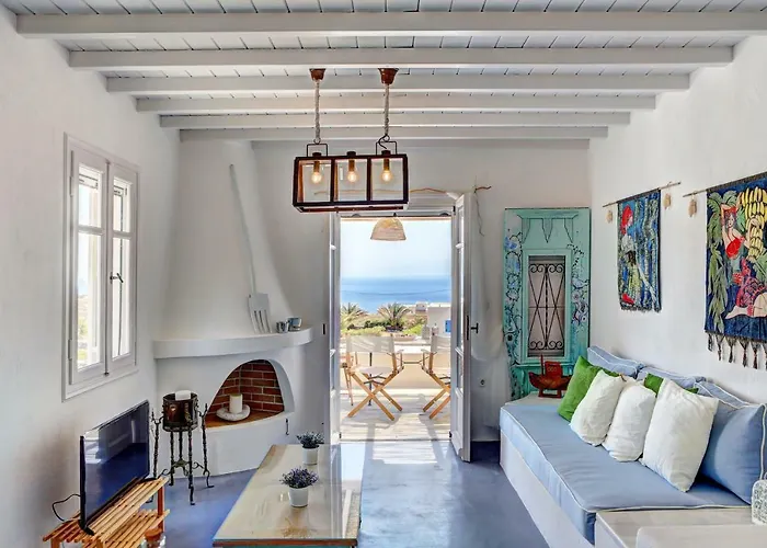 Kalo Livadi Plajı araçla yaklaşık 10 dakika uzaklıktadır. Tesis plaja yürüyüş mesafesinde yer almaktadır. Şehir merkezi 2 km mesafededir. Panagia Tourliani Manastırı villanın bitişiğinde yer almaktadır.